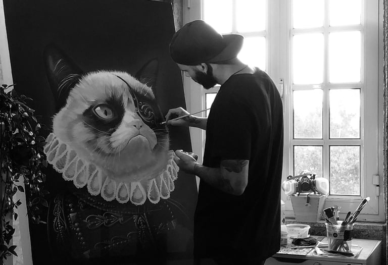 Mas foi nas longas horas em frente a uma tela que o seu imaginário e expressão artística evoluíram, levando-o a passar da corrida das paredes da rua, para um estado onde o tempo parece abrandar.